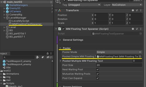 敵倒してスコア表示 MMFeedbackCorgiEngineFloatingTextという仕組みがある これはダメージ発生時にダメージ数を表示してくれるのだけど ここを改造してスコア表示すればいいんじゃね?と思ったの スクリプトを用意 とりあえず、継承とかはしないでスクリプト…